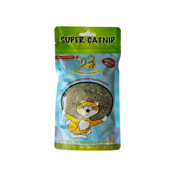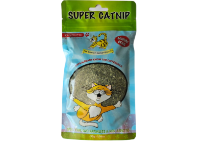 Super Catnip is a non-addictive herb that sends most cats into states of kittenish, friskiness and euphoria. Super Catnip can be spread on the ground, or a simple toy can be made by filling a sock, or cloth pouch with the herb for ultimate feline fun.