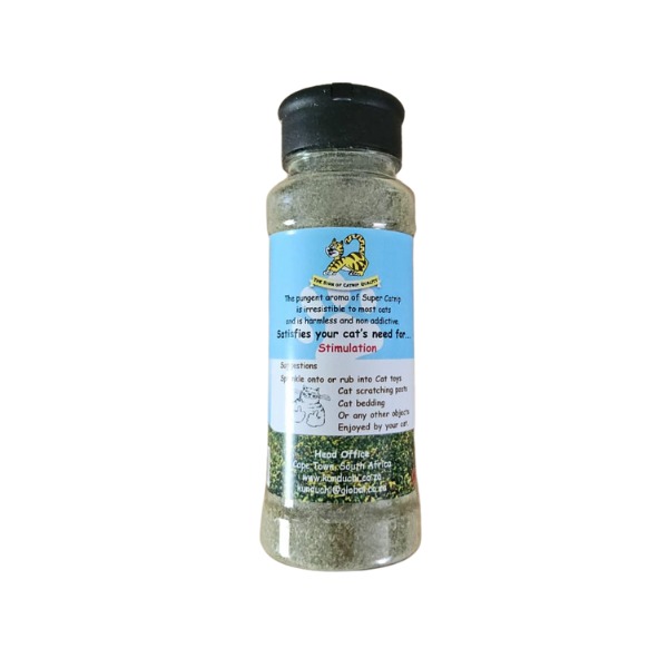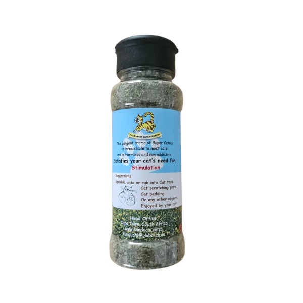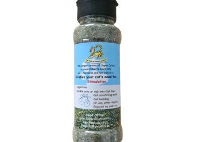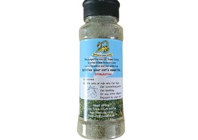 Super Catnip Shaker (40g) Non messy and easy to use This ideal container, with the flip lid and filled with the best Super Catnip, keeps it fresh, makes it easy to sprinkle, makes it easy to transport and store, makes it a huge hit amongst our feline friends. Fine Grain Medium Grain
